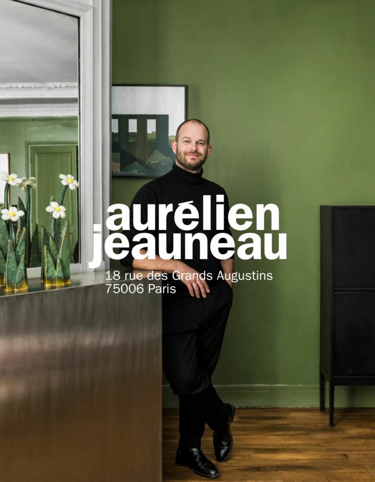 Aurélien Jeauneau est un antiquaire spécialiste du design français depuis 2014 et éditeur de mobilier de 39 ans. Reconnu depuis 10 ans pour son expertise scientifique et son engagement dans la promotion des Arts Décoratifs, il devient professeur à l’Ecole Boulle à la rentrée 2025 et crée un podcast, Mains Géantes et une revue dédiés au design et la création. Co-auteur de la monographie dédiée au designer Pierre Guariche parue chez Norma, il écrit des articles et donne régulièrement des conférences sur le design français du XXe siècle. En 2022, il cofonde la galerie Pradier-Jeauneau et multiplie les collaborations prestigieuses avec la Samaritaine, le PAD PARIS et le PAD LONDON. En juin 2025 il dessine une ligne de mobilier et d’accessoires pour Monoprix.